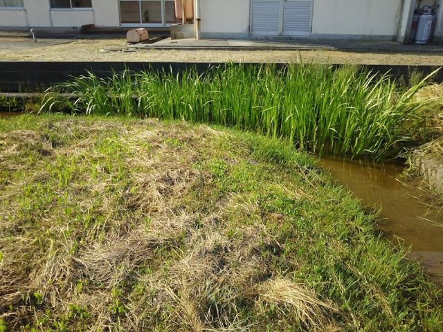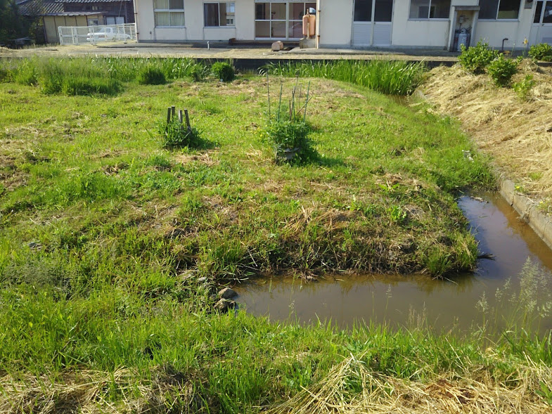 ずっと青天続きで干上がってきました。あと一週間くらいは雨が降りそうにないので、緊急工事します。私のほ場は用水から水が来ないのですべて雨水に頼ってます。だからわざと草を生やして朝露で水を確保したりしてますがちょっとやばいです。