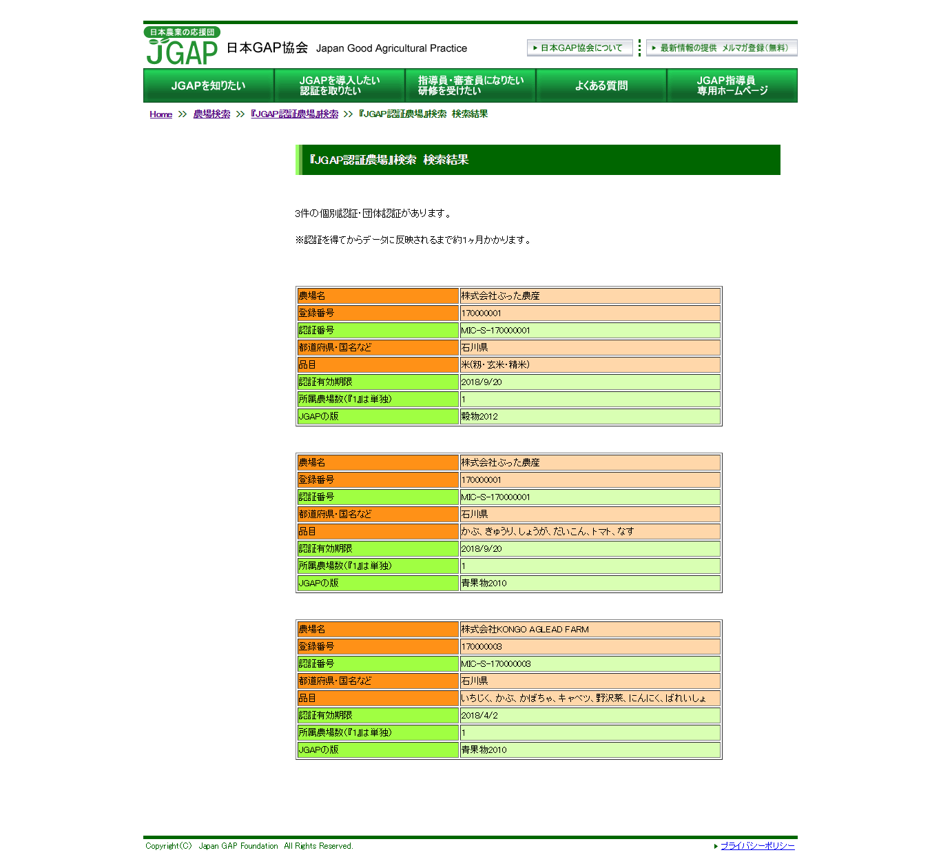 石川県が農業後進県という事情と石川県独自のGAP規格を全国に広めるつもりで今までJGAPに見向きをしなかったらこうなりました。県内民間企業は利益追求が優先なので石川県の方針に従います。だから東京五輪までこのまま行くでしょう。