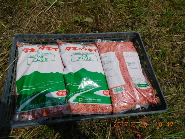 秋蕎麦については、ここの上下と右側の二面の四枚と別の場所で50アールほどになると思っています。今から草刈りして耕うんしていきます。車の止まっている写真の区画はそうめんかぼちゃですが、雨不足で不作確定なので、とうがらし追加で植えます。えん麦のアムリ2を3kg、ライ小麦の外側に手播きしました。