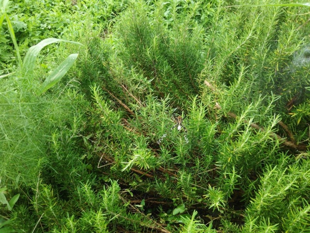 ローズマリーの株の中央で蜘蛛が巣を張ってました-2017-07-05