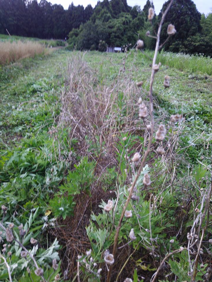 去年の秋に辛味大根を作付けしたほ場の草刈りの途中です-2017-07-09