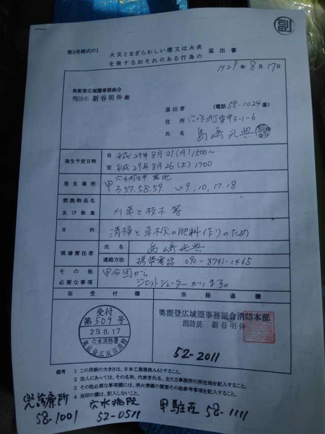 雨続きでかなり遅れましたが、秋蕎麦用の畑を作ってます。時間がないので今年は焼き畑農法です。22、23金沢出張なのであと3日で播種まで終わらせます。