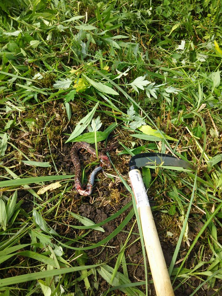 気づかずに切ったけどやっぱりいた。兵庫県で子供がヤマカガシを見つけて素手で捕まえたら噛まれてとかいう事件がありましたが、私は怖くて鎌でつつくのがやっとです。
