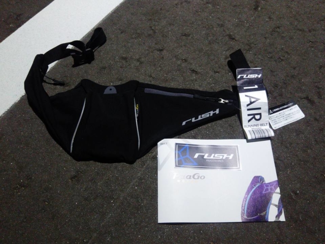 ブリーフィングが17時30分に終わって会場に来ていたPaaGoさんで腰につけるランニングベルト(ラッシュ1エアー)を税込み4000円で買いました。これは普通のロードレースでも使えるので。