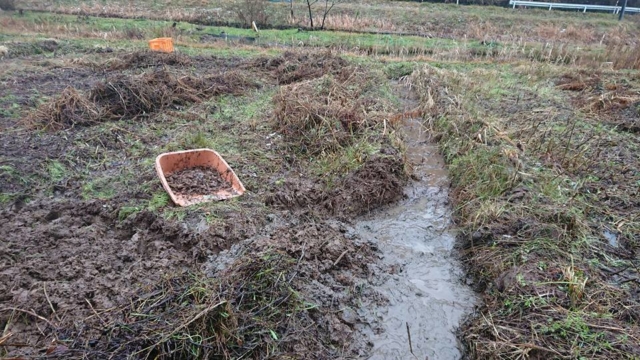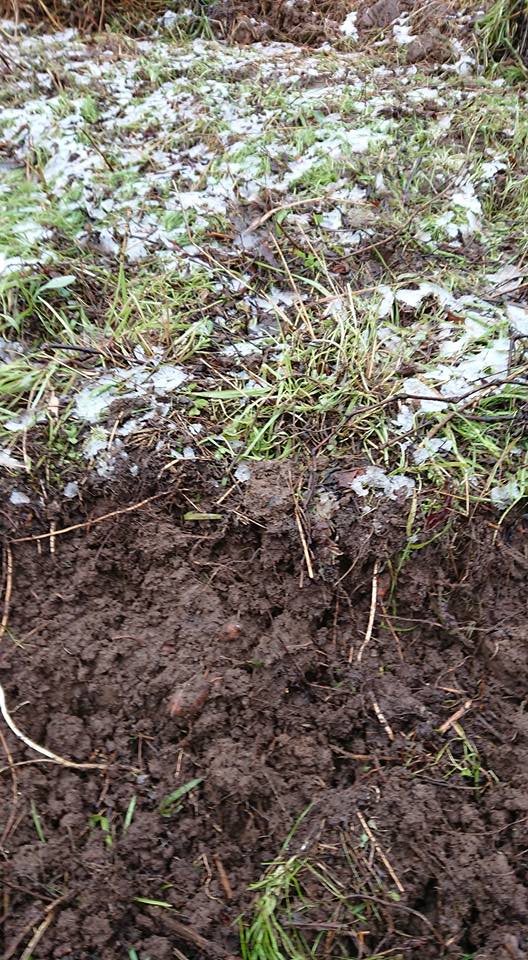 もともと田んぼなので15cmも掘ればグライ層という灰色の粘土の土壌が出ますが、アピオスはそこまで潜りません。