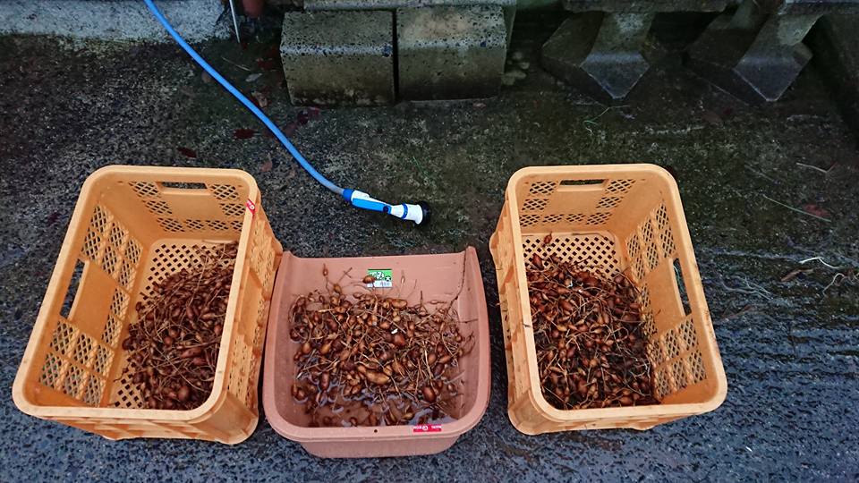 9時から15時まででアピオスをコンテナ半分ほど収穫できました。