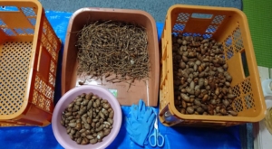 3-2 (現場)中山間地域では通路幅が狭く、農地も面積が10アールに満たない狭さで棚田が多いために大型の機械は入れずに使えない。そのため小型の機械と手作業が多くなり労働負担が大きいという現状がある。外部から購入した肥料や資材を運び入れるのも大変である。そこで省力化を追求した作業形態を構築する。IPMの実践、有機農業の輪作や混作などの技術を活用する。また自家採取することで種苗費用を抑えるとともに新品種を作り出すことで地域ブランド化を進める。