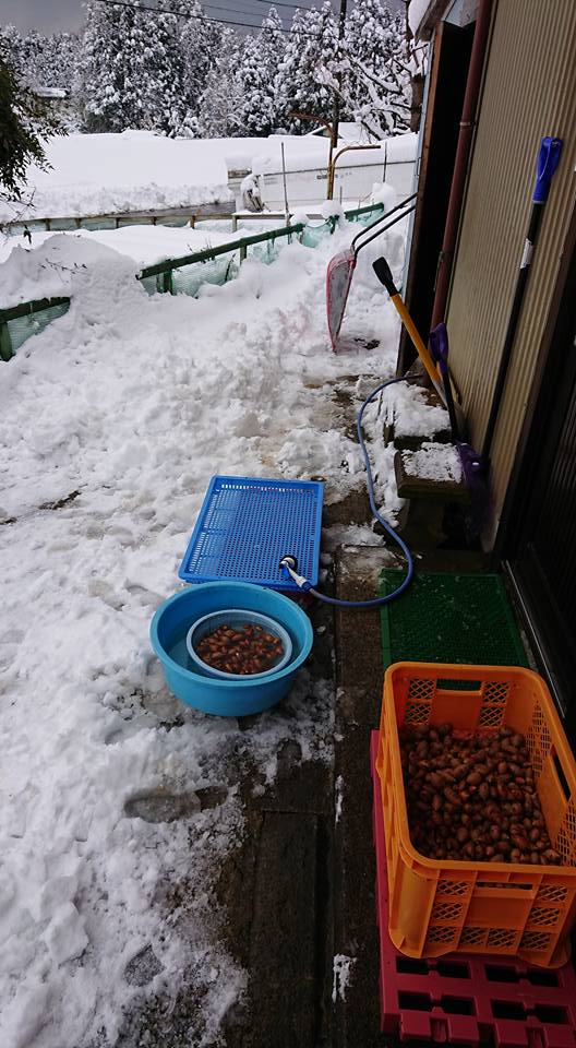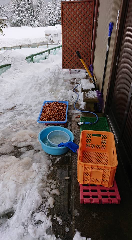 大雪ですね。玄関先で水洗いして駅舎で自然乾燥させます。-2018-02-06