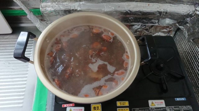 水からゆでますが、浮かんでくるイモは傷みが進んでいるようで、ゆでるとふにゃふにゃになりました。