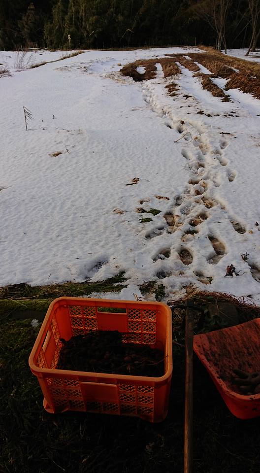 雪がやっと溶けてきたので、午後から1時間ほどアピオスの収穫してました。