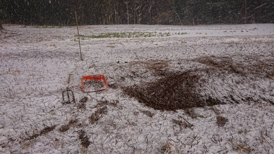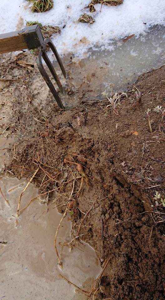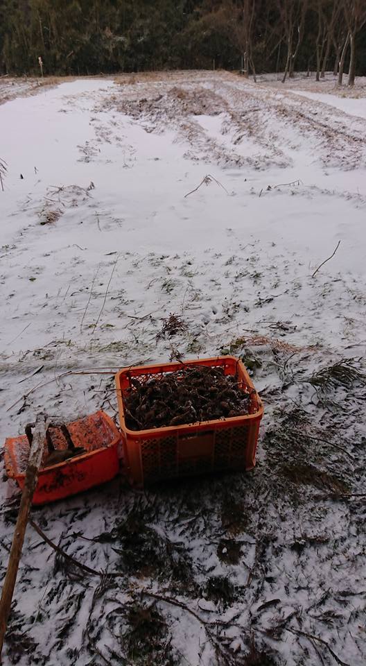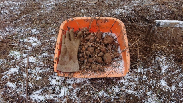 雪が降ったり止んだりの1日で、アピオス収穫してました。