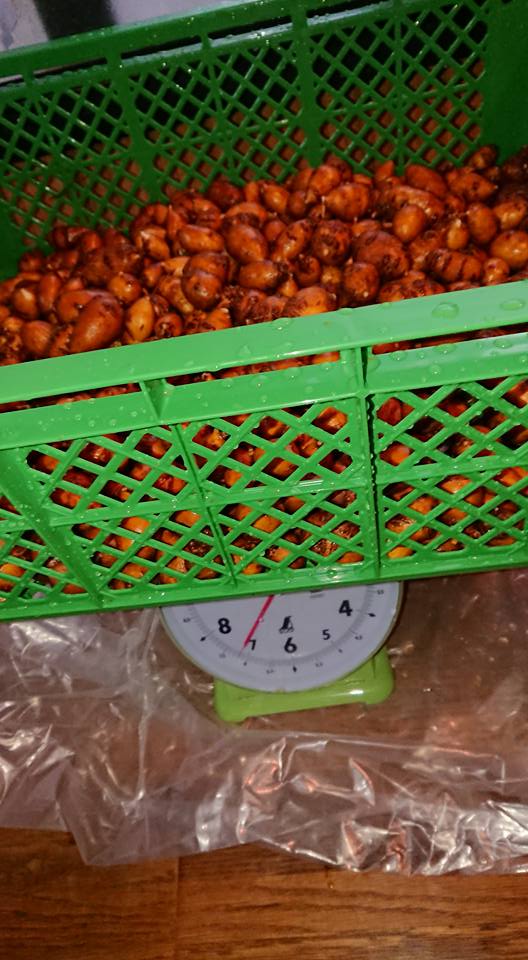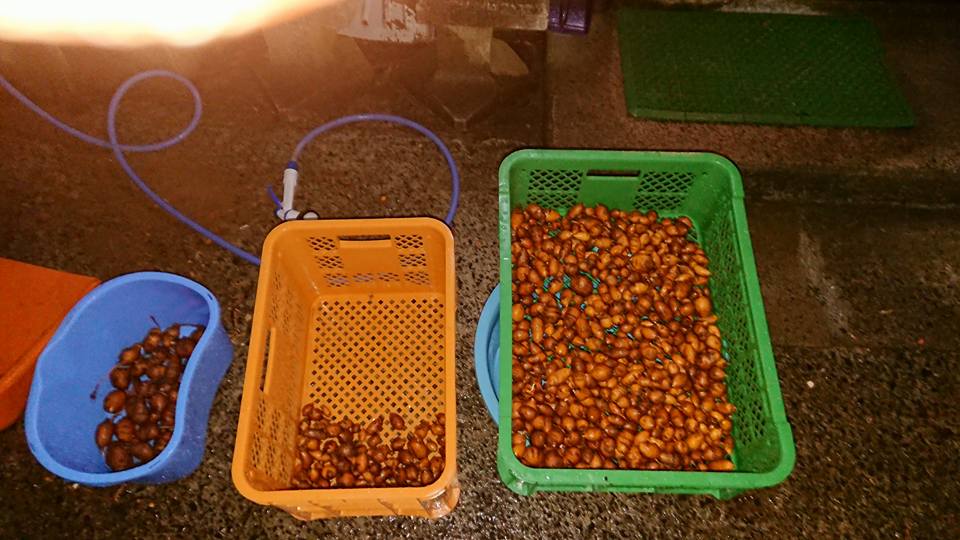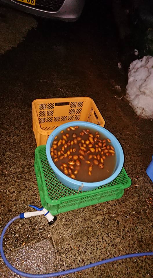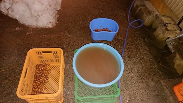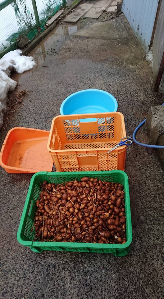 タライに水を張って浮いたアピオスの不良品と沈んだ良品の選別してました-2018-02-19