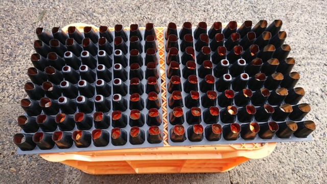 サイズ分けの方は育苗用のトレイの底をハサミで切ってみた。上手くいけばこれが一番安上がりだと思う。