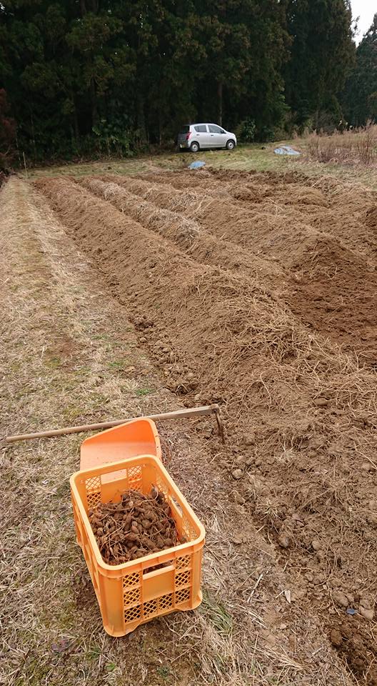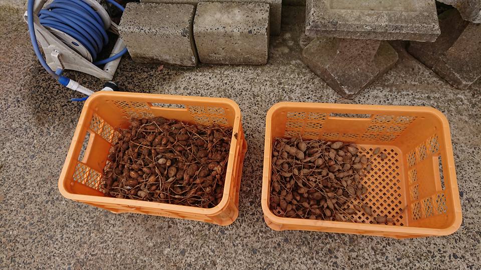 今日から天気が崩れる予報だったので、夜勤明けで昨日は終日アピオスの収穫作業です。