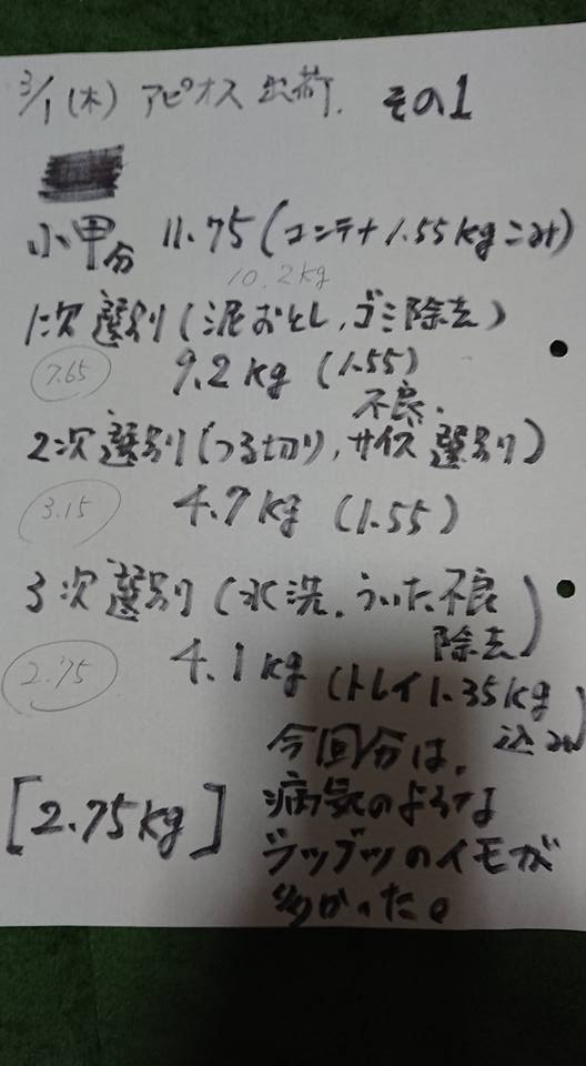 昨日アピオスを出荷しましたが、3.0kgだけでした-2018-03-02
