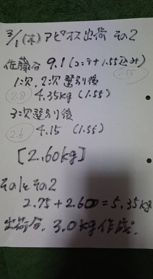 2日間で計画は10kgなので今日残りの分を出荷します。