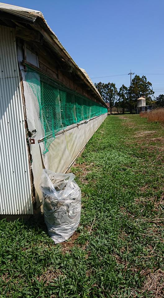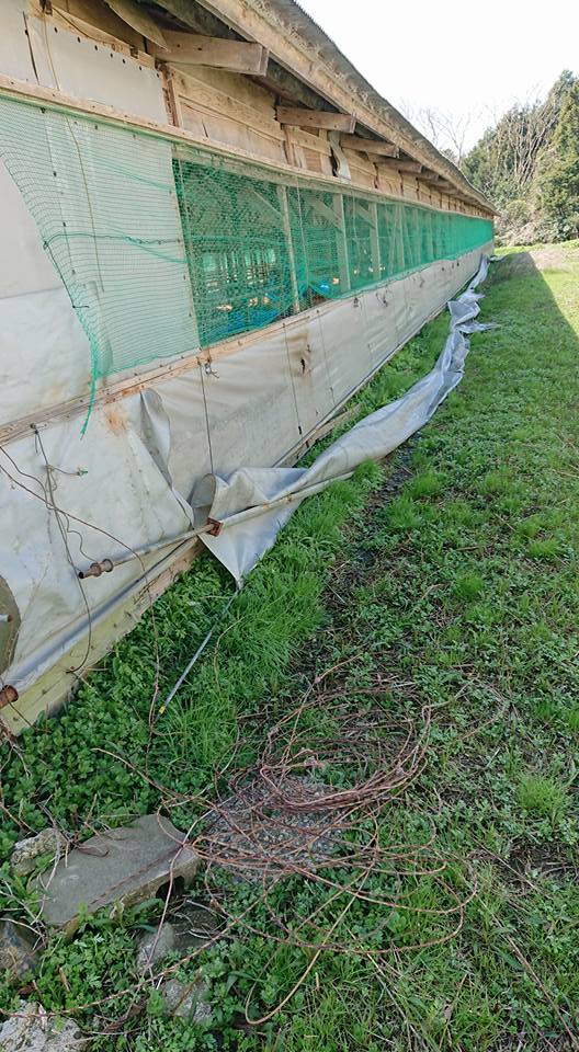 ぼかし製作倉庫の破れた側面のシートを再利用です-2018-04-05