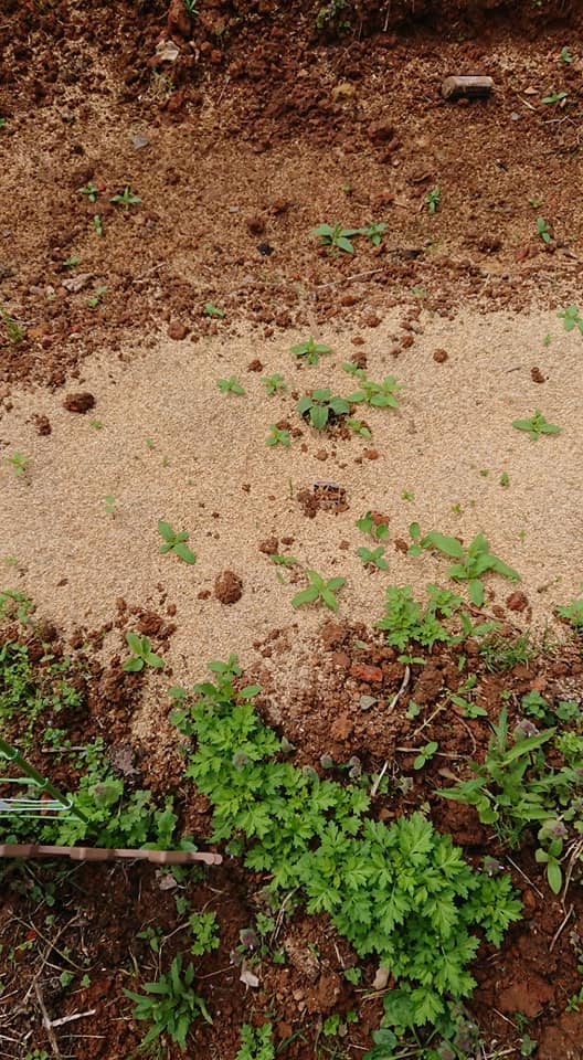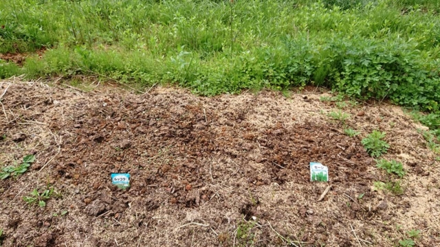 隣で種まきしたアブラナ科のルッコラは発芽しました。セージは多分無理です。