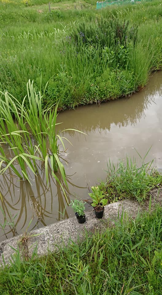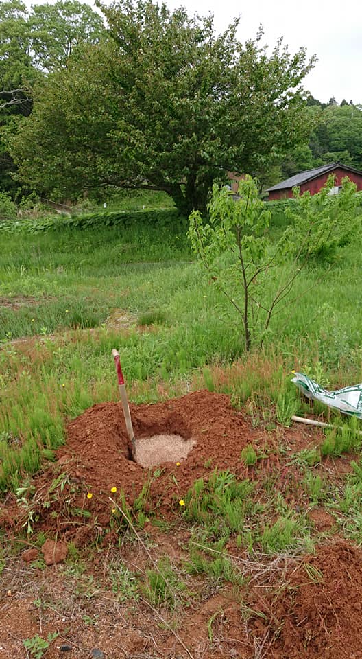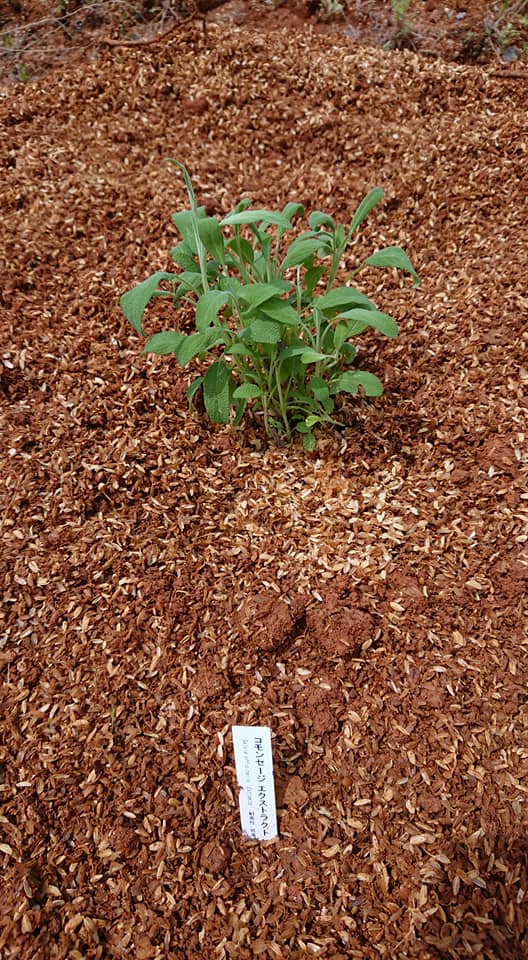 株分け増殖が目的です。前日にパーミキュライトを1袋ずつ植え穴に入れて、今日はもみがらを赤土に混ぜました。