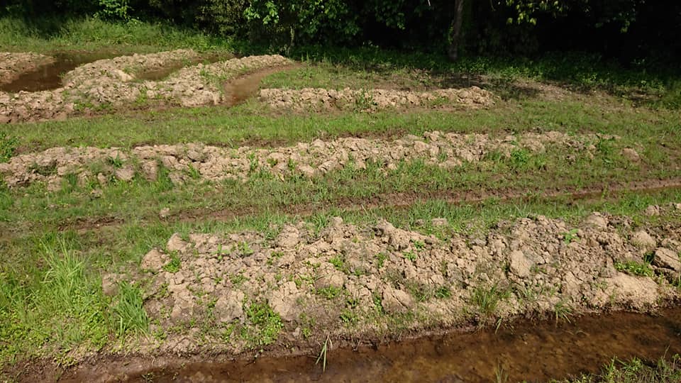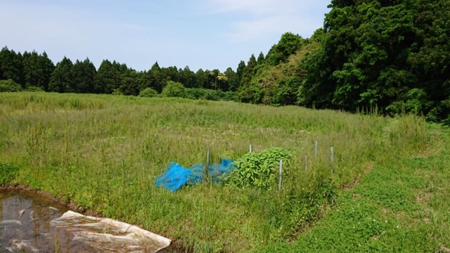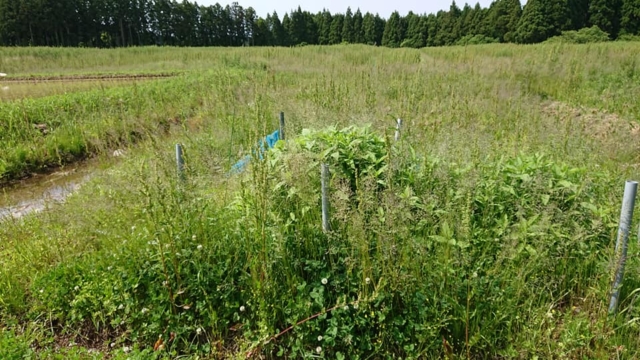 ここのまとめて埋めたキクイモは1mほどですが、畝立てした方は全然成長してません。