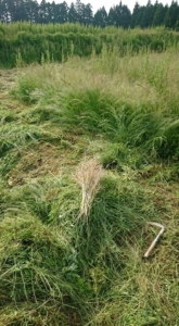 自家採取用の親田辛味大根のさやですが、茶色くなる頃にスズメが食べに来ます。