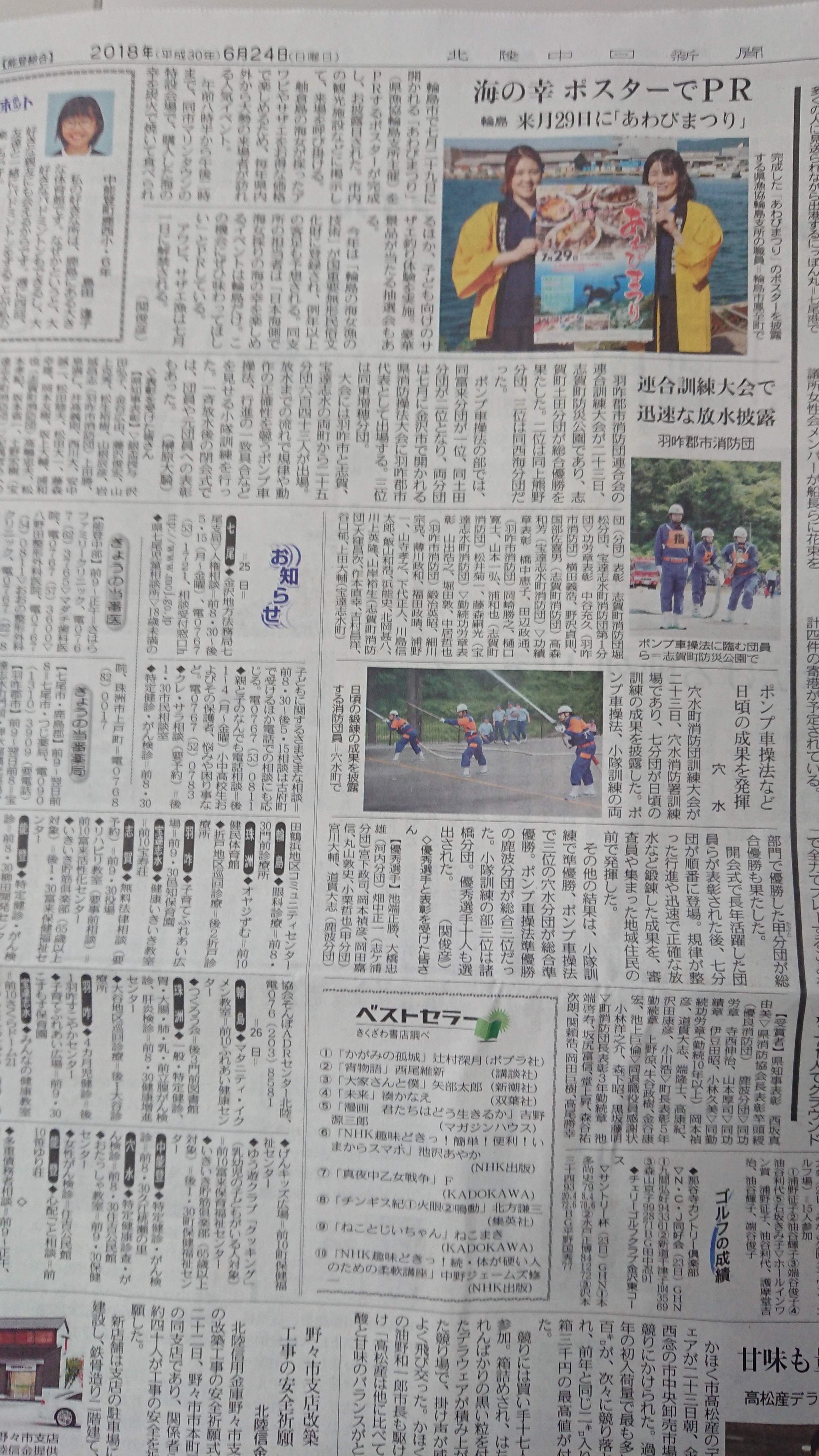 翌日の朝刊の紙面は北陸中日新聞の方が詳しかった。