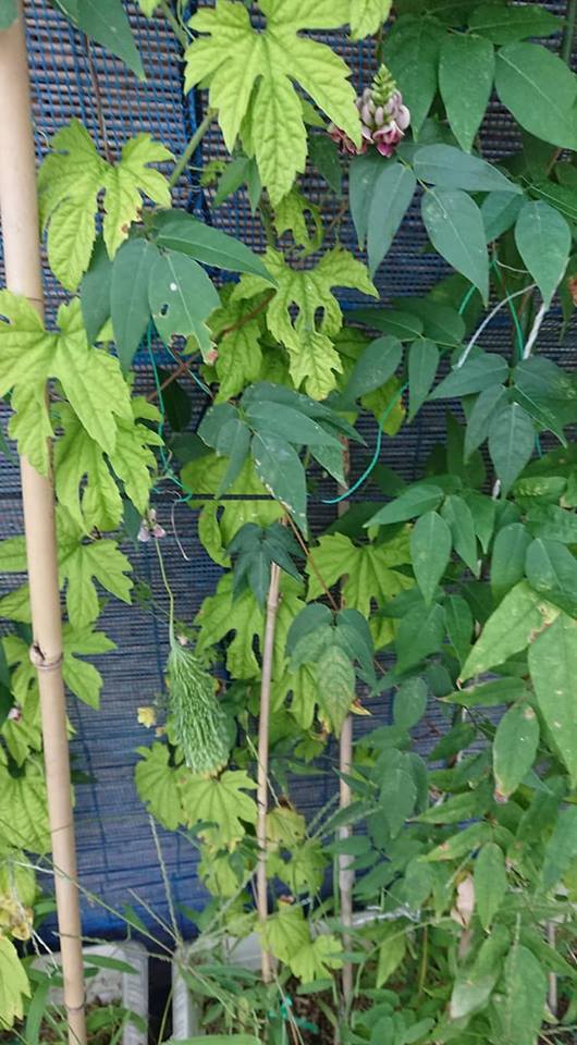 薄い緑のはゴーヤです。