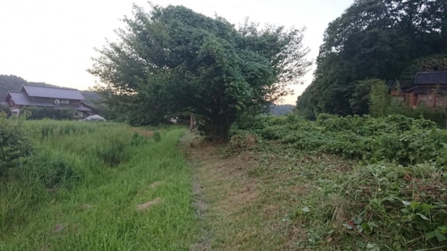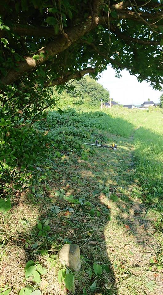 その後刈った草を集めるのに1時間。桜の木の下が休憩場所になります。
