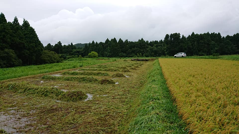 8月30、31日に雨の中、刈草をうねの形に積み上げてました。
