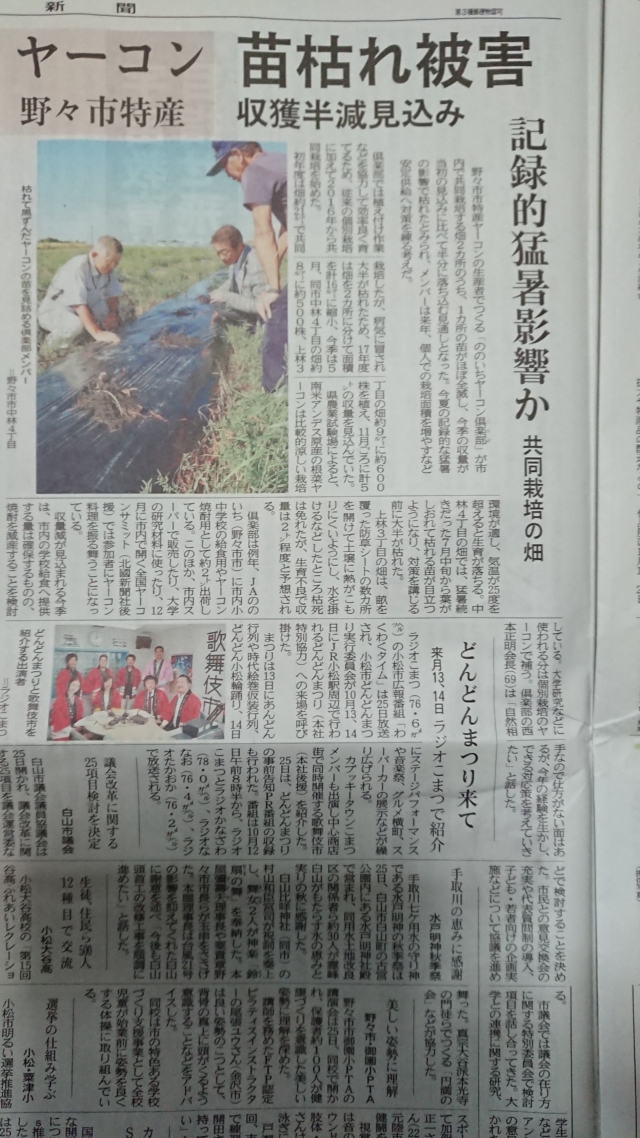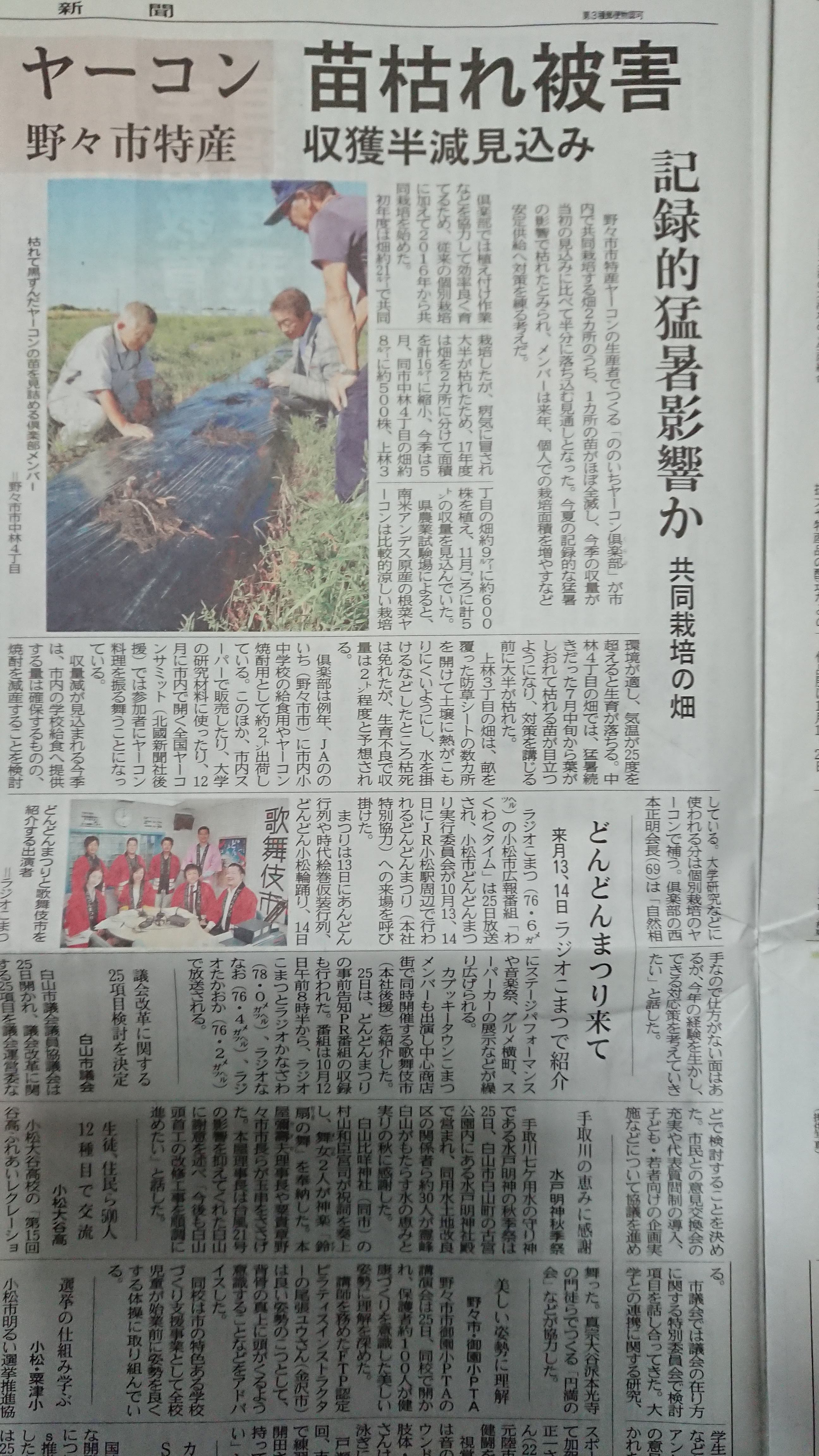 今日(9月26日)の北國新聞朝刊です。
