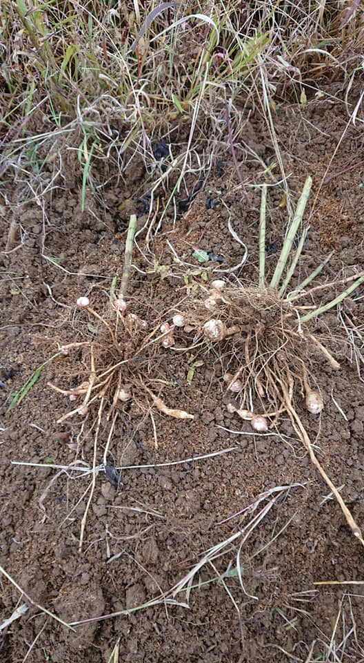 やっぱり小さい。収穫は茎が枯れてからですね。