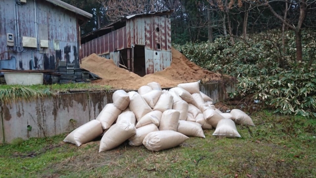 午後から雨の中もみがら袋を買って来て60袋詰めて運搬