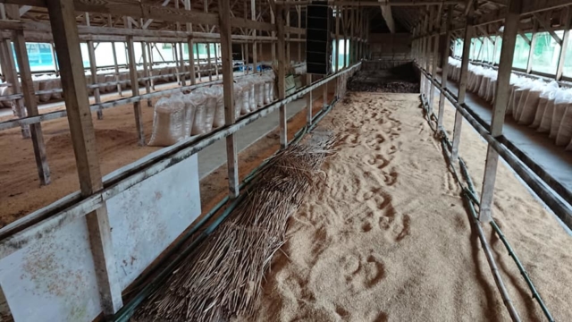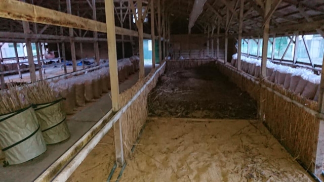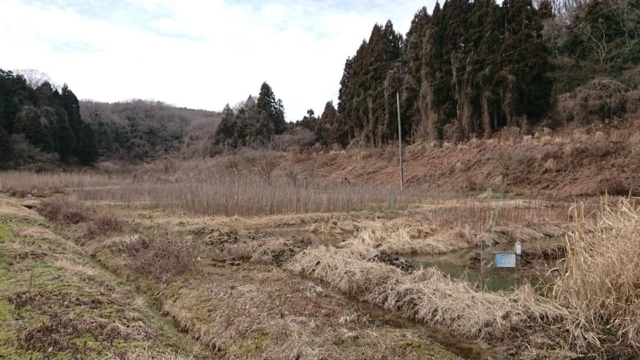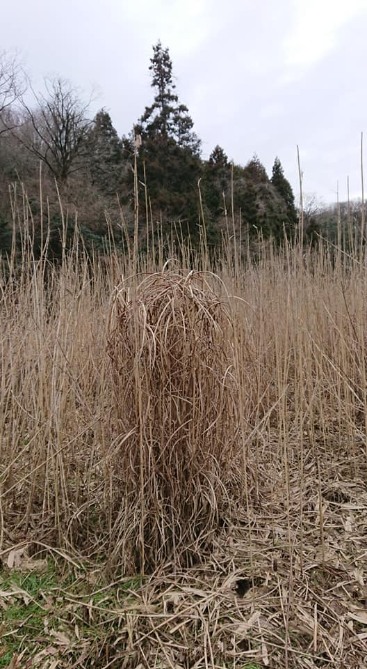 昼からとなりの耕作放棄地から茅(かや)を集めて倉庫に立てる作業です-2019-02-15
