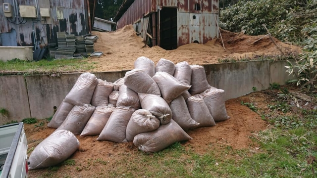 昨日は雪が降って寒かったので外の作業は中止して、もみがらの袋詰め。