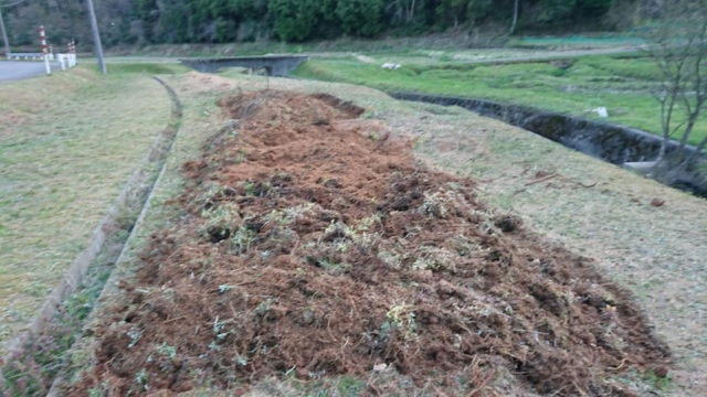 ヤーコンを植えつける前に草刈りしてました