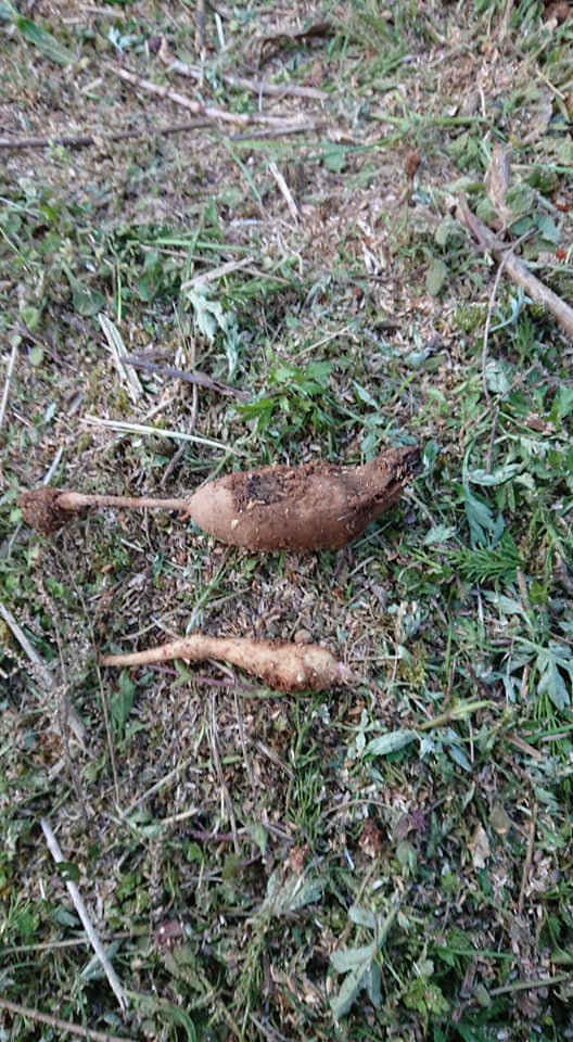 作業中に去年のヤーコンとキクイモが出てきました