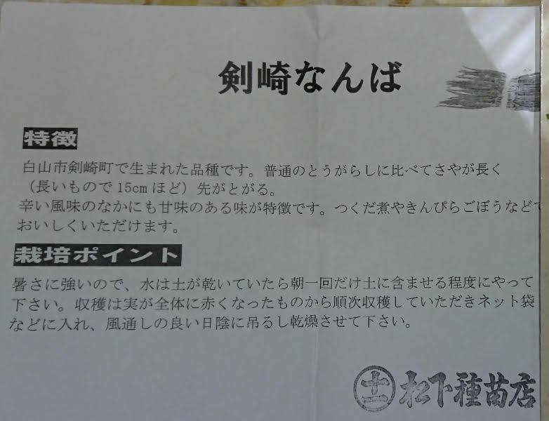今日、剣先なんば唐辛子の苗をもう10株買ってきました。