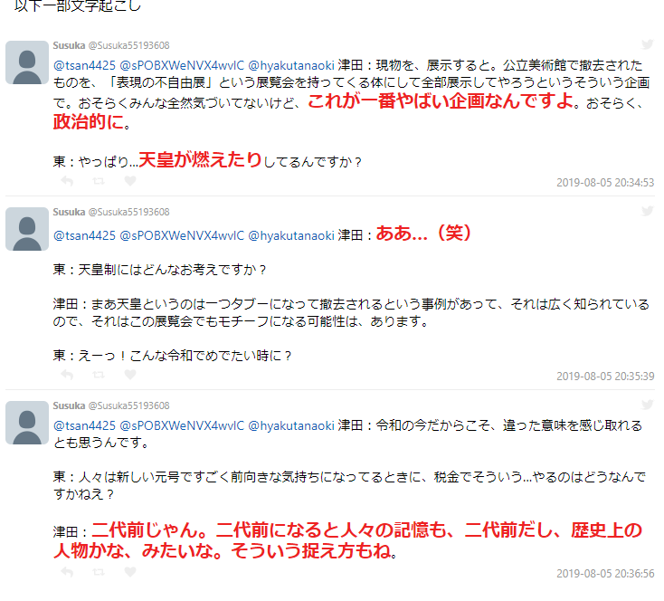 もともとこの展示会が中止になった理由は少女像ではありません