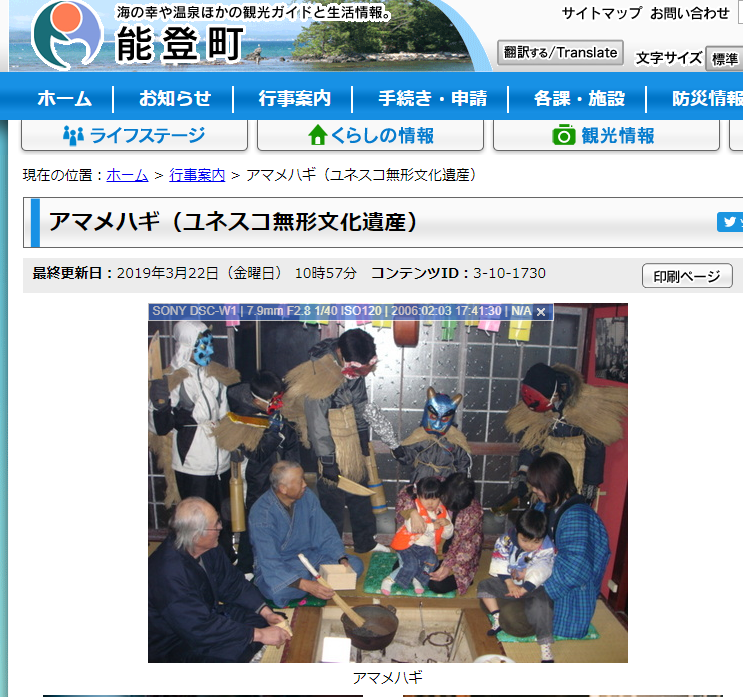 この地区は去年ユネスコの無形文化遺産に登録された「アマメハギ」の里でもあるんです。