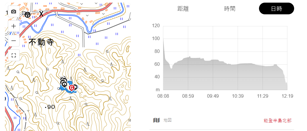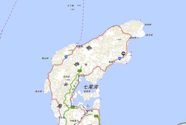 能登半島の地図でカメラマークのある部分です。そこの周辺の山の山頂から中腹にかけてです。