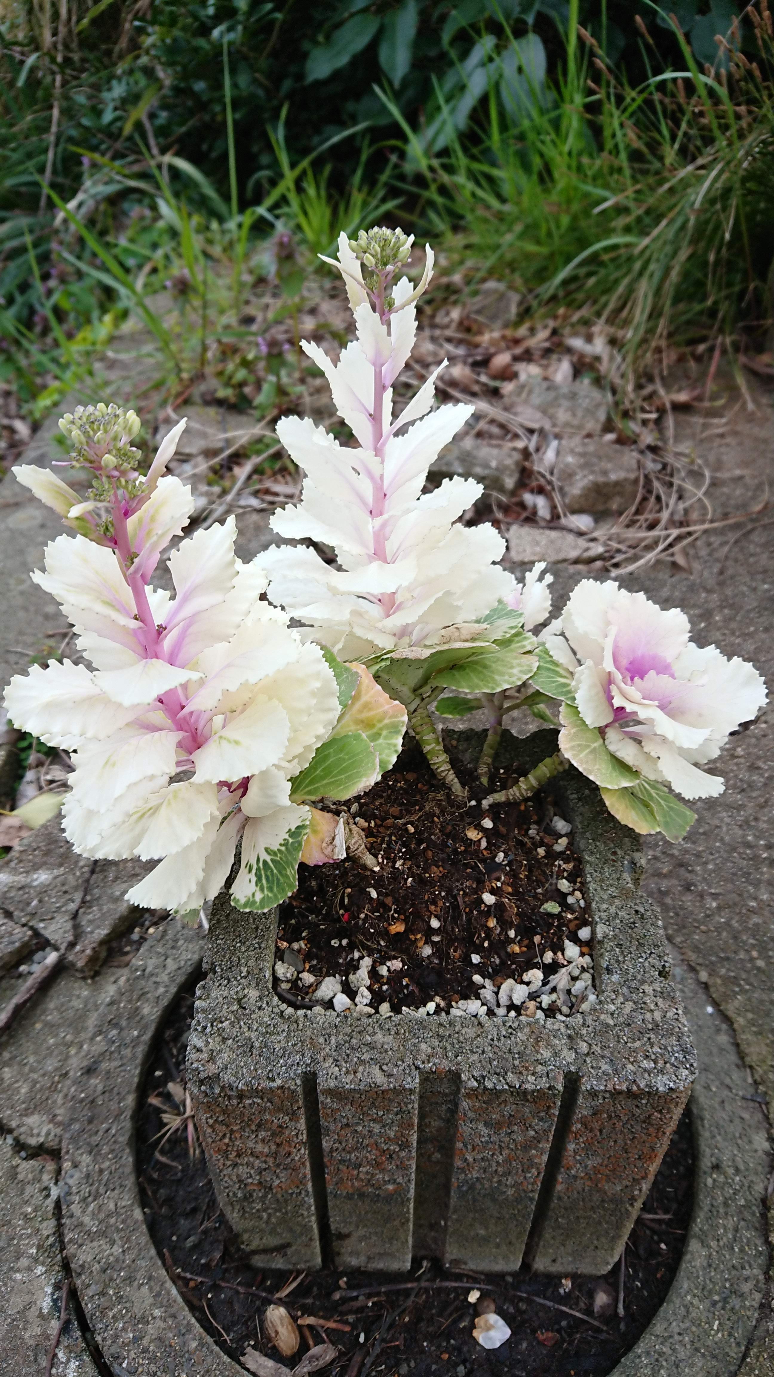 甲駅を借りてから私が花を植えるようになりました。でもそのまま植えると枯れるので、花壇用の四角形のブロック、キューティボックスという商品名らしいです、を上にのせて植えたところ半年以上枯れずにいられるようになりました。