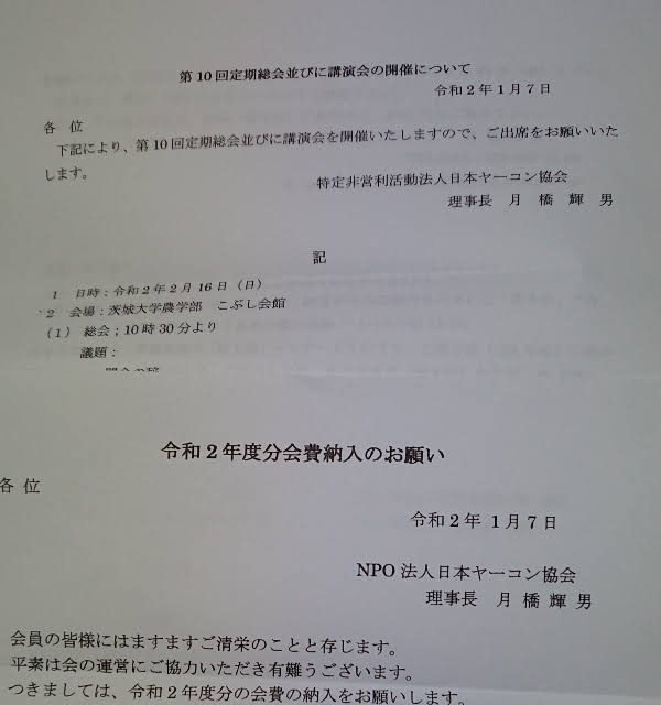 2020年1月11日 / 最終更新日時 : 2020年1月28日 shimasakimitsunori 日々是好日 日本ヤーコン協会の会員にしてもらいました-2020-01-11 それで2月は茨城大学農学部のヤーコンの研修会に参加します。たぶん雪だと思う。 https://www.yacon.jp/ FacebookXBlueskyHatenaCopy コメントを残す コメントをキャンセルメールアドレスが公開されることはありません。 ※ が付いている欄は必須項目ですコメント ※ 名前 ※ メール ※ サイト 次回のコメントで使用するためブラウザーに自分の名前、メールアドレス、サイトを保存する。 上に表示された文字を入力してください。 Δ