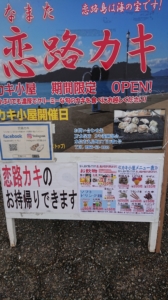 道の駅の入り口に「恋路カキ」ののぼり旗がありました。