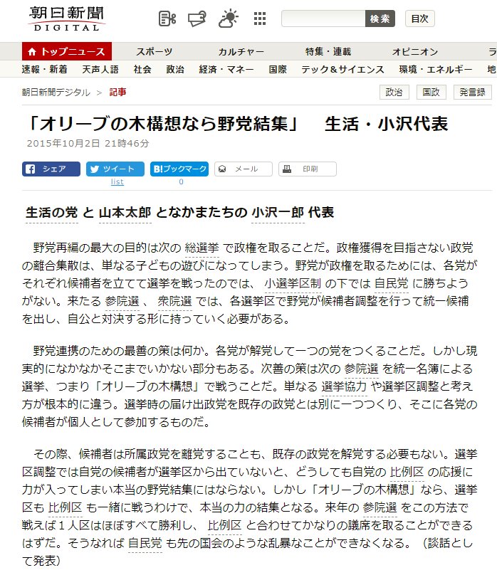 ツイッターのコメントでオリーブの木が出ていて、初めてオリーブの木が小沢一郎氏のオリーブの木構想のことだと知りました。