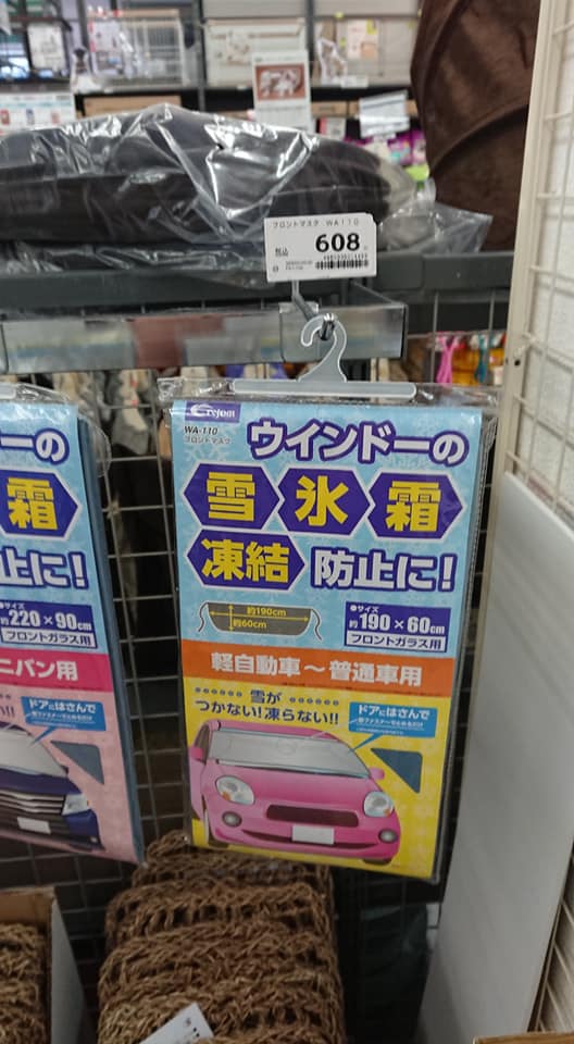 レーキを買いに行ったコメリで、車のフロントガラスのカバーをついでに買いました。