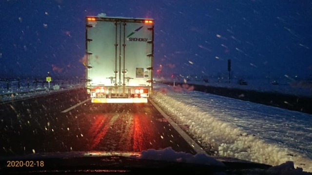 富山県と新潟県の県境近くの道の駅「越後市振の関」で車中泊しているうちに雪が積もりました。