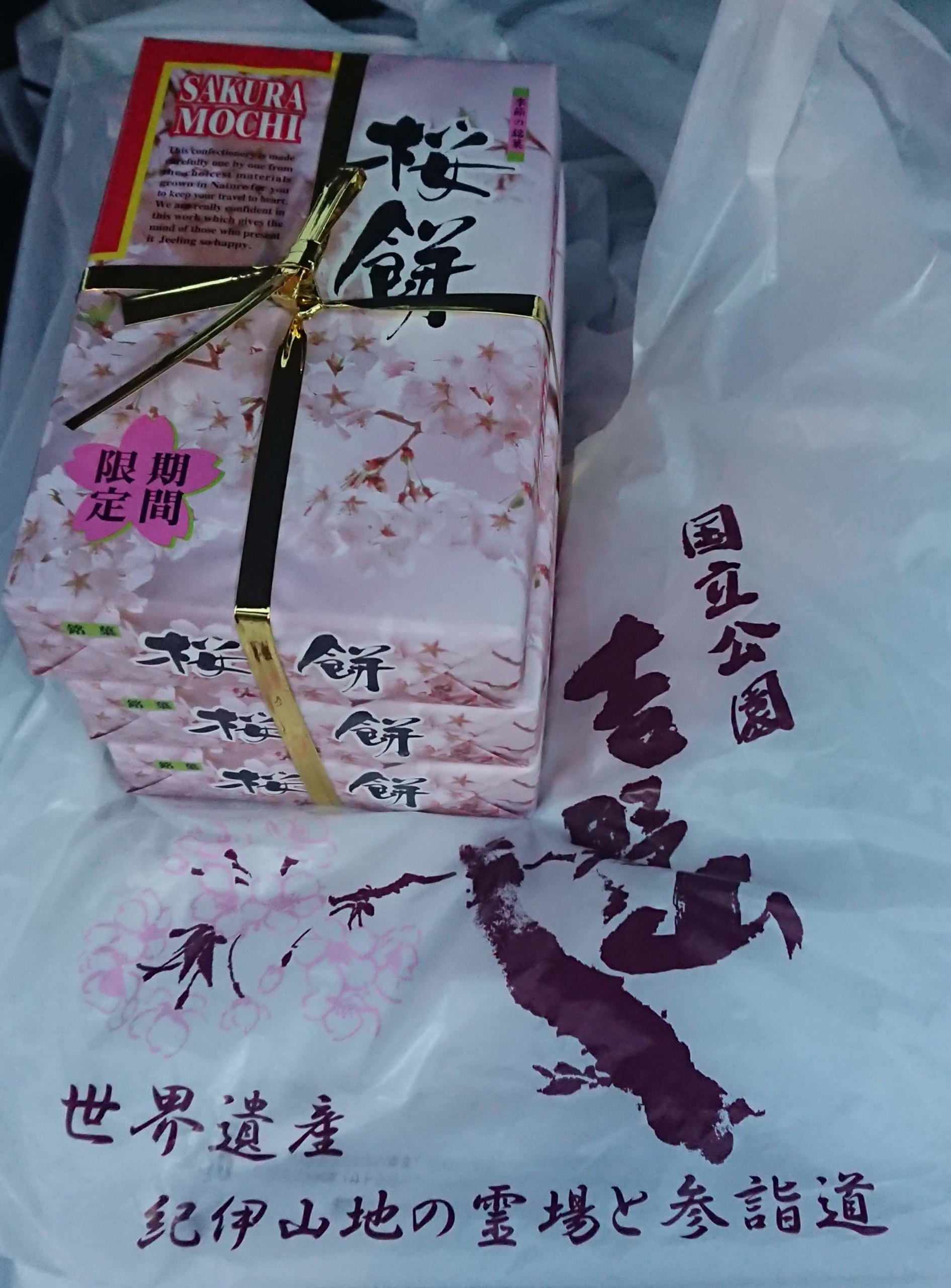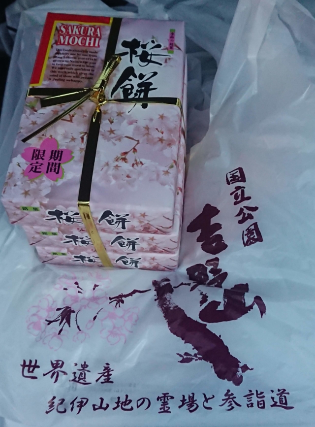 吉野山のお土産で買ったのは、さくらもち(桜餅)です。