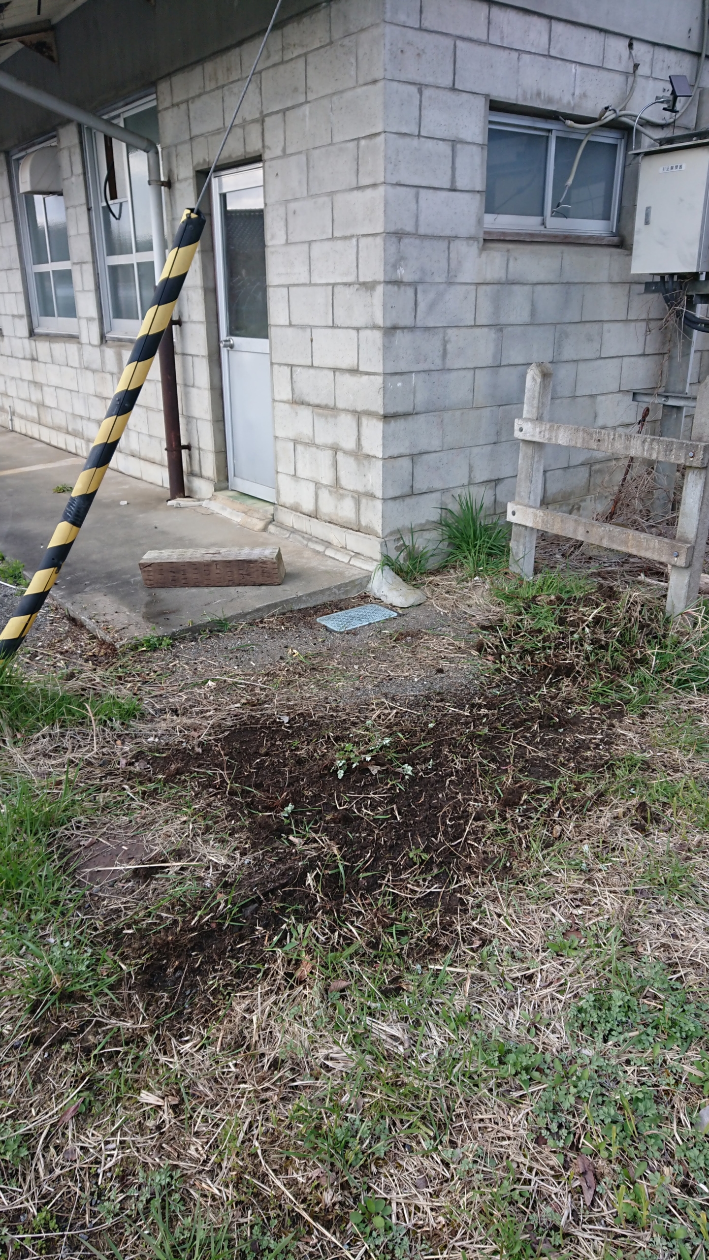 駅の水道メーターの周りの草取りしました。