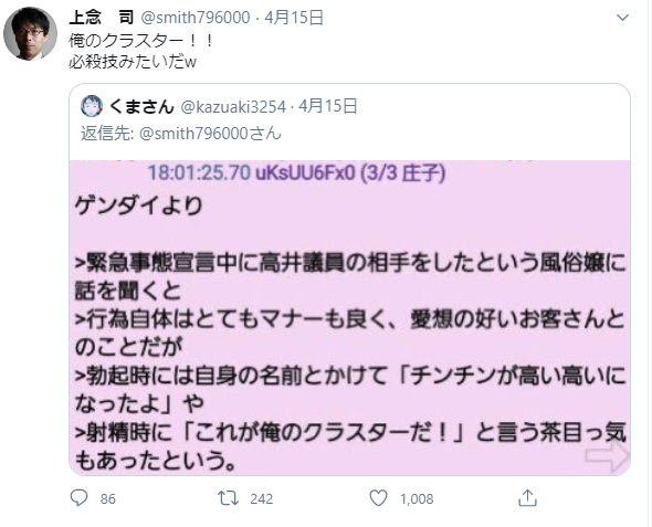 今日の虎ノ門ニュースで、臨時休業直前の新宿歌舞伎町のセクキャバで遊んで「犬になりたい」と言った立憲民主党の国会議員が話題になってた。