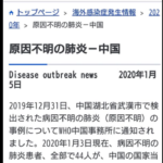 2020年4月12日 / 最終更新日時 : 2020年7月9日 shimasakimitsunori 日々是好日 日本の厚生労働省の武漢肺炎の第一報がこれです-2020-04-12 1月5日ですね。はっきりと武漢で発生したと表記しています。 この後、中国国内は春節の大移動で日本にも大勢の旅行者が来ていたのは周知のとおりです。 武漢肺炎の名前がダメだとかいう以前に中国共産党の習近平は他にすることがない […]